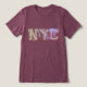 T-shirt graphique représentant New York City (NYC). Le graphique de NYC est sur le devant de ce t-shirt. Multicouleurs. Customisez le dos avec votre nom ou le texte souhaité. Grand t-shirt pour hommes, femmes et enfants. Utilisez le modèle pour créer votre propre t-shirt graphique NYC.