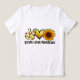 Ce design moderne présente le texte "Peace Love Sunshine" en typographie noire accentué par le signe de paix, coeur d'amour et un tournesol. #tshirtsforher #girly #fashion #fashion #style #stylish #peace #peace #love #sunflowers #floral
