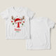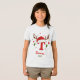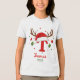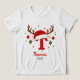 Create a one of a kind holiday keepsake with this festive personalized monogram. This design features the letter 'T' topped with a cute Santa hat and reindeer antlers, ready for your custom text. Click 'Personalize' to easily add a name and the year. Perfect for matching family shirts, custom stocking tags, or a special Christmas gift.