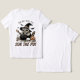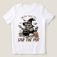 Un raton laveur "sinistre" sourit en brandissant un chaudron de sorcière accompagné du drôle de dicton "On My Way to Stir the Pot." Ce design noir, blanc et orange donne une touche d'obscurité malgré le texte amusant. Allez un peu "feral" cette saison d'Halloween et restez sur la tendance avec ce design amusant.
