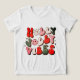 Rétro Christmas Holly Jolly Vibes Tendance Vacances Girly Girl's T-Shirts présente le texte "Holly Jolly Vibes" dans un script rétro en rouge, vert et rose accentué d'étoiles et de mignons visages heureux. Conçu par ©Evco Holidays www.zazzle.com/store/evcoholidays