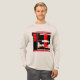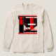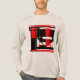 Caractérisé est un design complexe et géométrique dans des formes et des lignes rouges et noires vives. Le design abstrait est une version contemporaine du style moderne du milieu du siècle et un look saisissant. Photo ici sur un t-shirt Tri-Blend à manches longues "tourteau d'avoine" en impression classique, avec d'autres couleurs et styles disponibles.