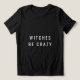 Voici Funny Halloween design en noir et blanc caractéristiques "sorcières be fou" en lettrage blanc moderne.