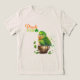 Ce petit oiseau adorable, une aquarelle, vert au cou orange, perroquet, dit en typographie orange et verte, "Pincer la preuve" avec un shamrock vert. Birdie est assise sur une tasse de café brun.