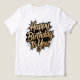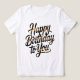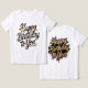 This tee shirt design features a golden Happy Birthday message in bold hand lettering, perfect for celebrations and gifting.