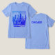 T-shirt graphique avec la ligne d'horizon de Chicago Illinois. Bleu aux couleurs violettes. La ligne d'horizon de Chicago est sur le devant de cette chemise tricolore. Le dos a "CHICAGO". Utilisez le modèle pour modifier le texte au verso ou laisser tel quel. Grand t-shirt pour hommes, femmes et enfants.