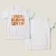 Ce design amusant et décalé à thème de chute comprend l'expression ludique "Pies avant les gars" dans une police audacieuse et d'inspiration rétro. Le texte est disposé dans une mise en page compacte et empilée avec chaque mot dans un style de police différent, créant une composition dynamique et attrayante. La palette de couleurs comprend des teintes automnales chaudes comme des oranges profondes, des marrons riches et des jaunes dorés, capturant parfaitement les ambiances douillettes de la saison.