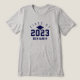 Un t-shirt gris de style varieté amusant avec l'année de graduation en grand nombre avec la "classe de" affichée dans une arche design ci-dessus. Un grand casquette et une merveille sont placés dans le centre et personnalisés avec le nom de la grade. Fait un grand cadeau personnalisé de gardien pour les adultes.