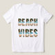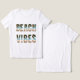 Ce t-shirt féminin est montré en blanc avec un imprimé de vibes de plage mignonnes. Customisez cet objet ou achetez tel quel.