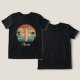 Ce t-shirt personnalisé et neutre pour les hommes et les femmes comprend une planche de surf cool, des vagues roulantes de style rétro et des silhouettes minimalistes de palmiers. Ce design mêle des teintes vintages audacieuses pour une esthétique de surf nostalgique.