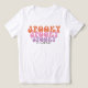 Cette conception présente l'expression "Vibes Éffrayantes Éffrayantes" disposées en cascade et empilées. Le mot "Éffrayant" est répété trois fois, chacune dans une couleur différente : d'une orange vif, passant à une rose douce et se terminant par un violet pastel. Les lettres sont épaisses et arrondies, donnant un aspect ludique et bulle qui contraste avec le thème éffrayant. Le mot "vibes" est écrit ci-dessous dans une police délicate, noire et cursive, ajoutant une touche de design à l'ensemble du design. De petits accents étoilés entourent le texte, renforçant l'humeur fantaisiste et festive. Ce design est parfait pour un point de vue ludique et léger sur Halloween.
