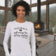 “Most likely to gift wrap the cat by mistake” is the original matching family holiday humor on this minimalist, white, long sleeve t-shirt. It's the perfect gift for that family member most likely to switch the gift with the cat, be it Aunt Cassandra or someone else. Enjoy holiday family parties in your matching "most likely to" t-shirts. A cute graphic of a wrapped gift that is available in different colors, and black typography in fun, handwritten script is easy to personalize with your own brief joke and title or name. Get it for yourself, the whole family, or as a special inside joke gift for a family member. We invite you to visit the Collection of more "Most Likely To" funny t-shirts and tops for the whole family on this product page or on the home page.