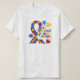 Un morceau de puzzle qui me lit 'aiment un enfant avec l'autisme", les morceaux de puzzle de bleu, de rouge, et jaune et le ruban de sensibilisation sur l'autisme sur le T-shirts de sensibilisation sur l'autisme, les sweat - shirts à capuche, les tasses, le magnet, les cartes, les autocollants, les sacs, les porte - clés, les boutons, et d'autres articles.