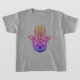 Design néon audacieux Hamsa Main avec le mauvais t-shirt oeil pour enfants. Le Hamsa est un symbole en forme de main qui comprend souvent un oeil pour éloigner le mauvais oeil, un regard malveillant qui est supposé causer malchance, maladie, ou la mort. Il est souvent utilisé comme un symbole de chance dans le judaïsme et souvent associé à la prière de Shema.