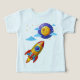 L'astronaute de la Lune Caricature Rocket Ship Kids T-Shirt, l'astronaute de la bande dessinée spatiale et navire-fusée. Vous pouvez customiser la taille, le style de chemise, le nom sur la conception du dos, les couleurs de police et plus à donner comme cadeau personnalisé aux enfants qui aiment l'espace extra-atmosphérique amusant. Changez le texte, les couleurs et les styles à la personnalisation, une idée cadeau pour les petits garçons.