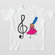 Illustration lunatique de bande dessinée mignonne d'un petit chiffre heureux fille de bâton tenant un symbole musical géant de clef triple. Facilement customisez et choisissez votre propre couleur d'arrière - plan ou ajoutez le texte. Image disponible sur de divers cadeaux et produits.