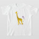 La girafe drôle badine la chemise avec une girafe mignonne grignotant sur une fleur pourpre et tenant quelques fleurs avec sa queue tout en patinant avec les patins de rouleau que des roues sont fait de fleurs.