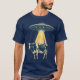 Cette conception imaginative de t-shirt présente une scène fantasque et humoristique d'un OVNI classique planant au-dessus, émettant un rayon jaune vif qui capture une vache noire et blanche. La vache est représentée dans un état d'enlèvement en plein air, ajoutant une touche ludique et surréaliste à l'image globale. Le design de l'OVNI rappelle l'esthétique de la science-fiction vintage, avec une forme de soucoupe épurée et des lumières espacées uniformément autour de sa circonférence. Le contraste entre l'attitude calme de la vache et l'événement extraordinaire crée un graphique charmant et accrocheur, parfait pour ceux qui apprécient des vêtements décalés, à thème extraterrestre