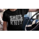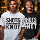 T-shirt enterrement de vie de jeune fille grunge noir et blanc "shots before the knot". Personnalisez les couleurs. Prenez-en un pour toute la fête de mariage et la mariée.