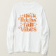 Ce design d'automne dynamique et ludique comprend l'expression amusante et confiante "Thick Thighs Fall Vibes" dans une police audacieuse d'inspiration rétro. Le texte est agencé dans une mise en page dynamique et empilée, avec chaque mot rempli de teintes chaudes d'automne, y compris les tons orange, pêche et rose doux. Les étincelles qui entourent l'hôtel apportent une touche de fantaisie et de brillance, ce qui renforce l'atmosphère festive et cosy du design. La typographie est à la fois audacieuse et courbée, lui donnant un attrait vif et vintage qui saisit parfaitement l'essence de l'automne.