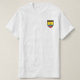 Le drapeau national de l'Equateur est infusé dans une fausse forme de bouclier doré avec le nom du pays ajouté au-dessus du drapeau.