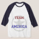 Une étoile argentée à l'intérieur d'un anneau argenté et les mots "Team l'Amérique" en rouge et le bleu faits dans un regard affligé fané.