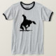 Une des plus grandes manifestations sportives de rodéos : Équitation de Bronc de selle. Silhouette noire et blanche de dessin de cavalier sur le cheval broncing. Neutre de genre ; pourrait être le cowboy ou la cow-girl.