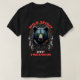 T-shirt 'WILD SPIRIT OF FREEDOM'. Un t-shirt boho très détaillé avec un visage majestueux d'ours aux yeux verts brillants, centré sur un attrapeur de rêve en plumes, perles et cuir tressé. L'ours a une expression mystique et spirituelle, avec de la fourrure dans les tons bleu et argent se mélangeant dans le cadre circulaire du attrapeur de rêves. Des éléments tribaux décoratifs comme des lunes de croissant, des flèches et des motifs d'inspiration nature entourent le design. L'arrière - plan est transparent ou noir pour un contraste amélioré : art numérique, lignes complexes, textures riches, tons clairs vibrants.
