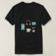 T-shirt minimaliste avec icônes de café, casque, téléphone et plante. Parfait pour le travail à domicile et les vibrations créatives.