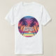 Un T-shirt Endless Summer scène de plage de style rétro avec palmiers, un ciel en dégradé de soleil, et le texte "Endless Summer", couleurs à vague de vapeur, poster de surf vintage esthétique.