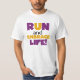 Si vous aimez courir, courir 5Ks, 10Ks, demi-marathons ou marathons, vous adorerez ce texte coloré en violet et jaune qui lit Run and Embrace Life! Courez et Embrace Vie T-shirts, sweat - shirts à capuche, magnets, boutons, cartes, autocollants, porte - clés, et beaucoup d'autres articles pour les coureurs qui aiment un design de course brillant et coloré!