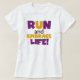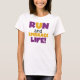 Si vous aimez courir, courir 5Ks, 10Ks, demi-marathons ou marathons, vous adorerez ce texte coloré en violet et jaune qui lit Run and Embrace Life! Courez et Embrace Vie T-shirts, sweat - shirts à capuche, magnets, boutons, cartes, autocollants, porte - clés, et beaucoup d'autres articles pour les coureurs qui aiment un design de course brillant et coloré!