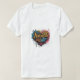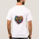 Le design des t-shirts comporte l'expression "Harnais le coeur." dans une police vibrante, de style graffiti. Les mots sont entourés de éclats de couleur et de lignes dynamiques qui évoquent un sentiment de passion et de dynamisme. Le design général est audacieux et énergique, captant l'essence du message