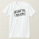 Fait à Miami ! Êtes-vous de Miami, la Floride ? Avez-vous un ami ou un membre de la famille qui aiment Miami, la Floride ? Si oui, ceci "a fait dans…" le T-shirt est exactement le cadeau que vous recherchez ! Les caractéristiques de conception qu'un patiné "fait à Miami" dans le noir pochoir-comme le lettrage a entourées par un rectangle arrondi par noir.