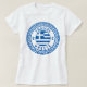 T-shirt pour femme Thassos, Grèce avec le drapeau national de la Grèce à l'intérieur d'un cercle de motif grec ancien symbole. Profitez de porter ce T-shirt pendant vos vacances sur la belle île de Thassos ou offrez-le en cadeau souvenir.