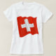 Cette conception est un drapeau suisse. Le drapeau suisse flotte au vent. Ce drapeau suisse a l'air superbe sur ce T-shirt féminin