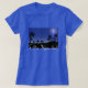 Le t-shirt décontracté à manches courtes pour les femmes avec le cou de l'équipage est montré en bleu. Graphique imprimé sur représente les hommes sages qui visitent la naissance sainte dans le directeur. Texte : Feliz Navidad. Customiser ou acheter tel quel. Tailles de s à 3x.