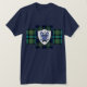 Ferguson Tartan and shield t shirt - Just in time for Tartan day! Show your colors first week of April and celebrate your Celtic heritage. This looks awesome on a black T too - for more formal wear under a jacket. The Ferguson Clan shield of azure blue is adorned with the 3 boars heads and the traditional buckle. Scotland's thistle is crested on the knight's helmet. Both the Modern and Ancient versions of the Ferguson Clan Tartan serve as background.