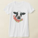 Ferme à pavot I par Grace Popp. Comprend un gros plan d'une vache entourée de fleurs rouges-roses vibrantes.