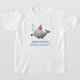 T-shirt d'anniversaire avec une jolie illustration d'une petite baleine. La baleine porte un casquette rayé rouge et blanc et a commencé la fête d'anniversaire.