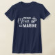 Cette conception célèbre la fierté et le soutien de la mère d’une Marine avec l’expression "Proud Mom of a Marine" en couleurs vives et audacieuses. La composition reflète l'amour, l'honneur et l'admiration pour le dévouement et le service du Corps des Marines des États-Unis.