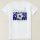 T-shirt avec Proud Soccer Maman sur le dos en lettres bleues; personnalisé sur la poche avant avec le nom de la mère ou de l'enfant qui commence par la lettre "V".