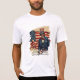 Une figure patinée mais fière se tient devant un drapeau américain en lambeaux—sa présence est un hommage à l'esprit durable de liberté, de résilience et du rêve américain. Cette image capture l'essence du Jour de l'Indépendance avec dignité poétique et force patriotique.