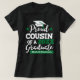 Célébrez la remise des diplômes de votre cousin avec ce t-shirt moderne avec une typographie "Proud COUSIN of a 2023 Graduate" en polices blanches et vertes décorée d'un grand casquette avec un goût vert ; personnalisez facilement ce t-shirt avec l'année de remise des diplômes et le nom du grand en éditant les champs modèles. Ce t-shirt fait partie de notre "Graduation Family Matching T-Shirts" avec de nombreux articles de coordination pour tout membre de la famille.