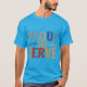 Une déclaration audacieuse de dévouement orne ce t-shirt. L'expression "Fière de servir" s'affiche dans un design multicolore, chaque mot ayant une teinte vibrante différente.