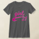 Fille à l'exposition "21" de roche pièce en t de logo dans le rose et le blanc.