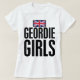 Cette chemise montre Union Jack (drapeau des syndicats) en rouge patriotique, blanc et bleu, est dessous les mots "FILLE de GEORDIE" écrite dans le lettrage audacieux noir.