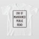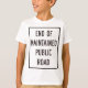 Un panneau indiquant la fin de la route publique entretenue. Ce design semble vraiment efficace sur ce T-shirt garçon