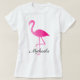 Personnalisez avec votre nom ou tout autre texte. T-shirt d'oiseau flamand mignon unique pour dames. Flamant rose dans la lumière rose chaud à noir sombre dégradé gris foncé design motif pour elle.