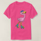 T-shirt Flamant rose comme Patineur avec Casque de Patinag